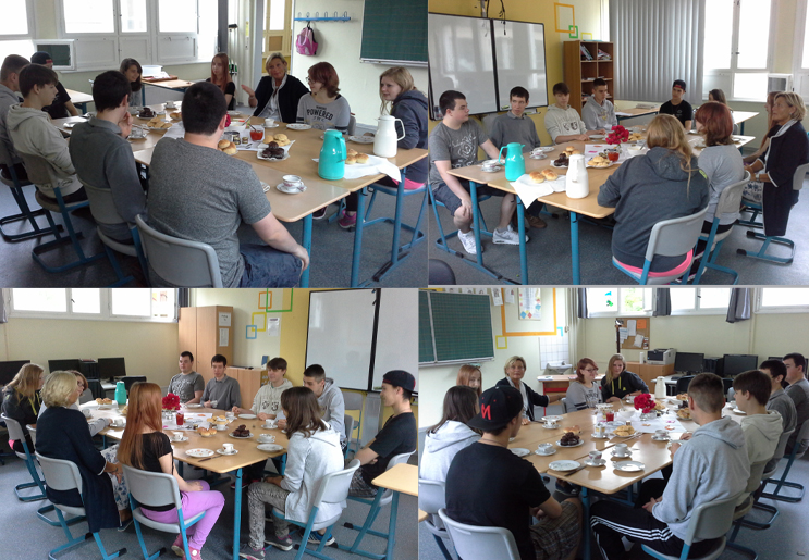 Englischstunde in der Klasse 10BR2 Es ist geschafft. Alle Abschlussarbeiten sind geschrieben und in der nächsten Woche beginnen für uns die lebenspraktischen Wochen. Deshalb hat sich unsere Schulleiterin und Englischlehrerin Frau Moscha für die letzte Unterrichtsstunde etwas ganz besonderes einfallen lassen. Die Auswertung des Schuljahres erfolgte bei einem typisch englischen Frühstück. Es war sehr lecker. Vielen Dank! |