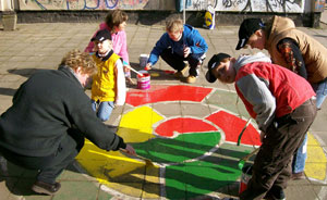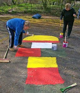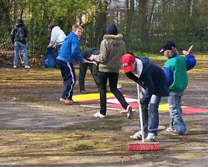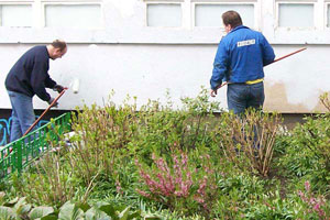 Dem Aufruf des Schulelternrates „Ran an die Harken, Schaufeln, Pinsel und Schubkarren – wir verschönern gemeinsam unser Schulumfeld“ folgen jedes Jahr an einem Sonnabend viele Schüler, Eltern und Lehrer. Nach der Begrüßung aller Helfer durch unseren Schulelternratsvorsitzenden Herrn Dörp geht es mit viel Eifer und Enthusiasmus in die Schulaußenanlagen. Hier werden Grünflächen von Laub und Unrat befreit, Spiele für die Pausengestaltung auf den Asphalt mit bunten Farben aufgetragen, auf dem Fußballplatz Maulwurfshügel und Unebenheiten beseitigt, Fenster und Türen von Graffiti gesäubert und übergestrichen. Vor dem Fachgebäude werden Kräuterbeete angelegt oder auf Vordermann gebracht. Diese Beete sind nicht nur ein optischer Hingucker sondern die Kräuter sollen auch den Hauswirtschaftsunterricht bei der Zubereitung von Speisen geschmacklich unterstützen. Während der Arbeiten ist es natürlich möglich, auch eine Pause einzulegen. Es gibt Grillwurst, Kuchen, Obst und Gemüse sowie verschiedene Getränke. Damit nicht eine einseitige Belastung der vielen Helfer eintritt, werden auf dem Schulgelände einige Stationen zum sportlichen Ausgleich aufgebaut.