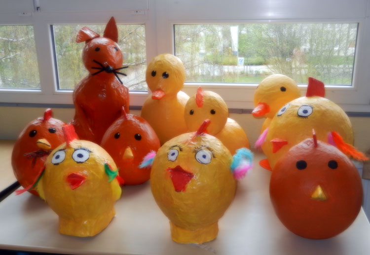 durften wir die Augen anmalen. Später mussten die Tiere mit Klarlack