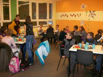 Für alle teilnehmenden Kinder ist an diesen Tagen um 8:45 Uhr der Frühstückstisch im Essenraum unserer Schule gedeckt. In gemütlicher und entspannter Atmosphäre verbringen die Schüler ihre Frühstückspause und können so Kraft für die nächsten Unterrichtsstunden tanken.